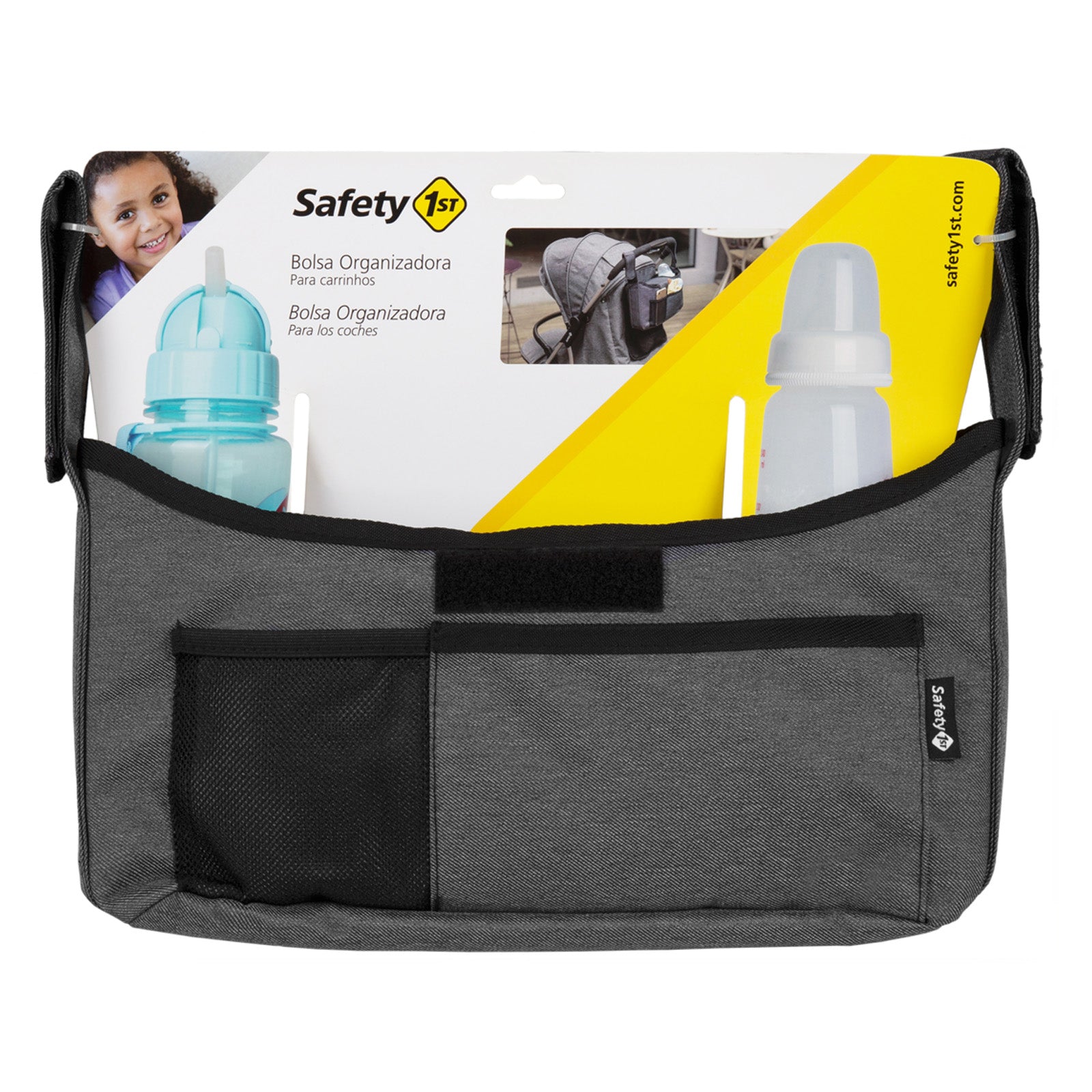 A Bolsa Organizadora Safety 1st é perfeita na organização durante o passeio com seu bebê. Ela tem tamanho e formato universal e, através dos velcros, acopla-se nas manoplas do carrinho e deixa acessível tudo o que adulto pode precisar pegar, como mamadeira, chupeta, brinquedos e ou lanche.