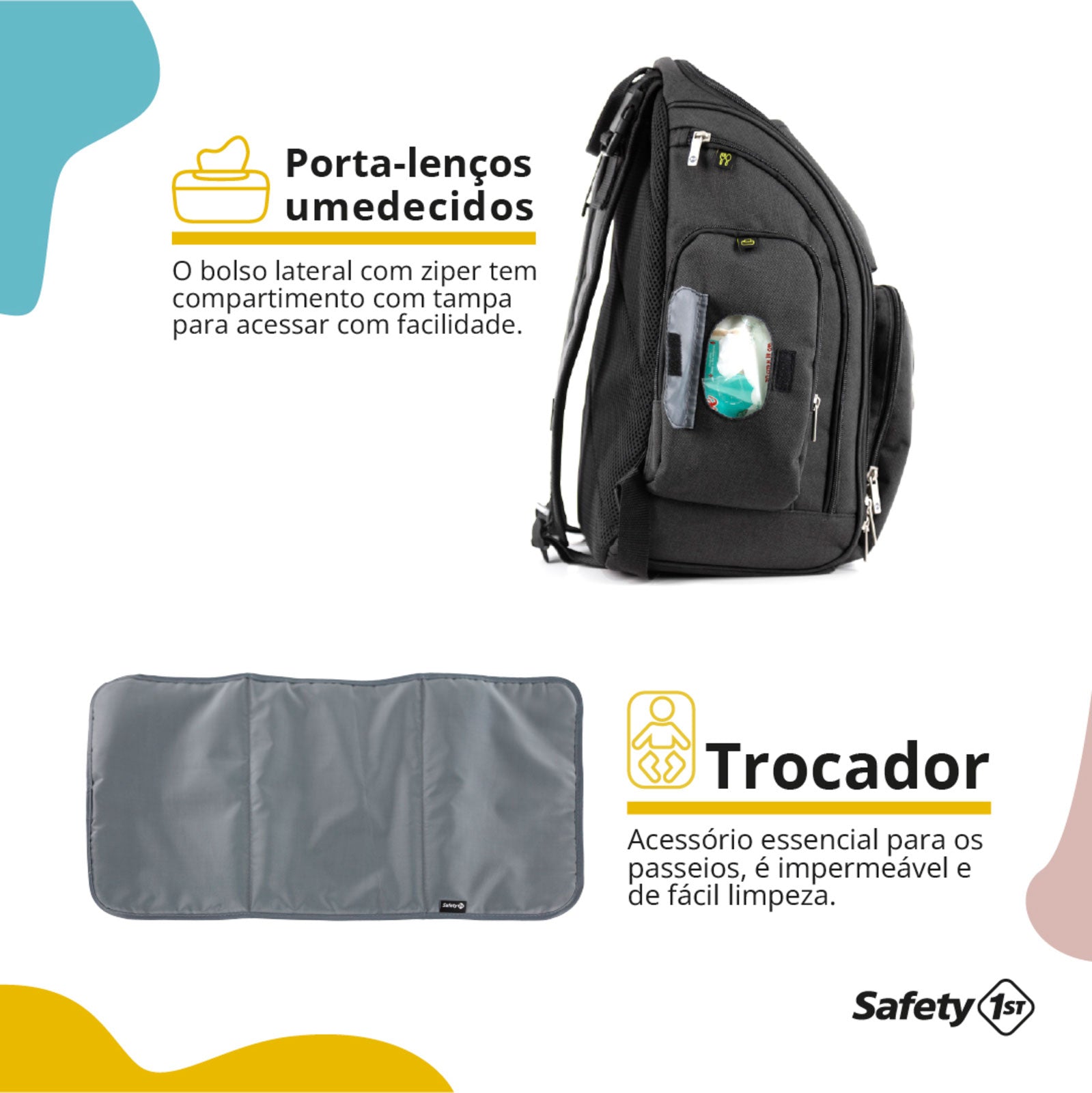 Com tudo fácil de achar, a mochila Way te dá mais tranquilidade: bateu a fome? Tem bolso térmico para a mamadeira ou para um lanchinho. O bebê quer o brinquedinho preferido? Está bem fácil de pegar. Encheu a fralda? Tem trocador incluso e até bolso impermeável, para colocar as roupas molhadas.