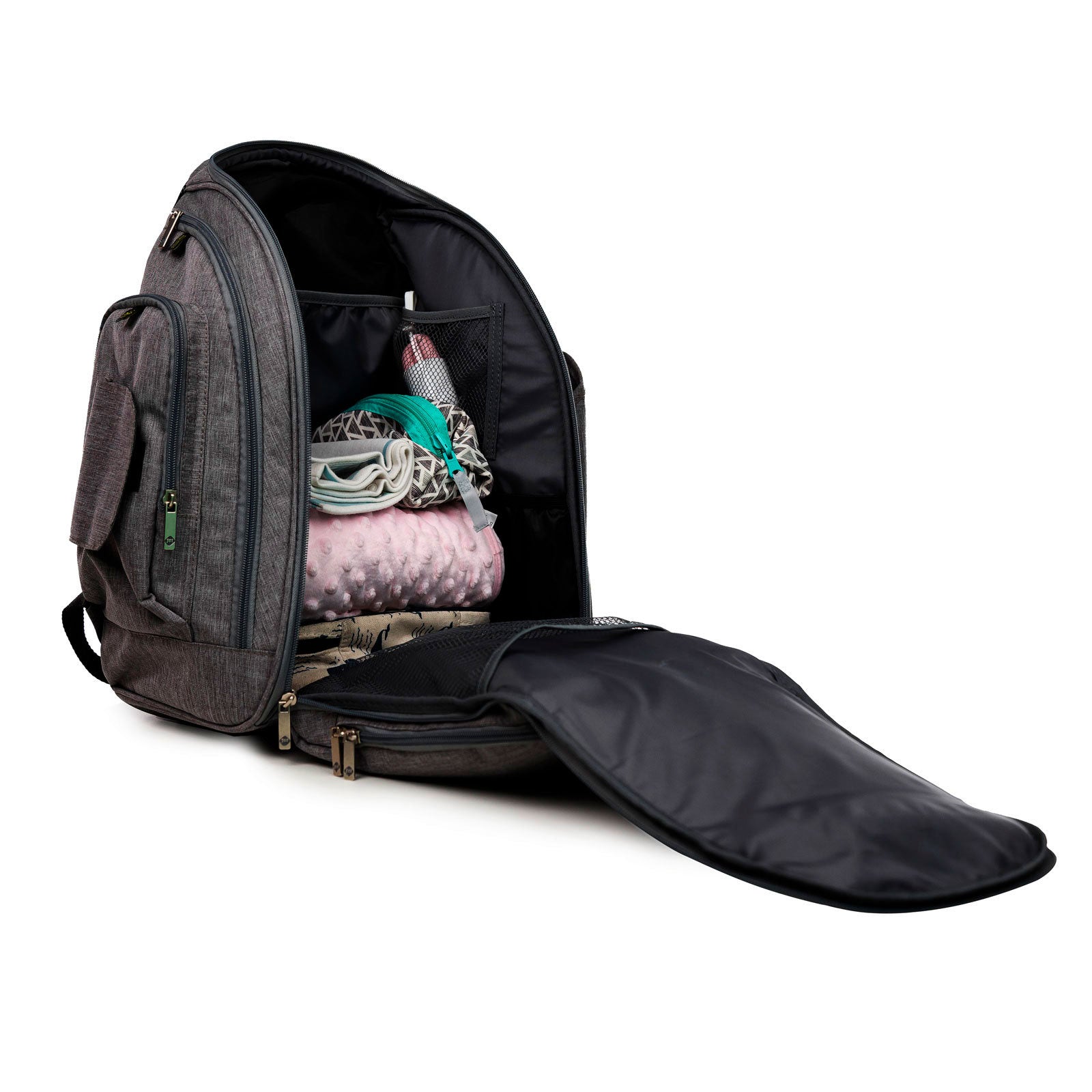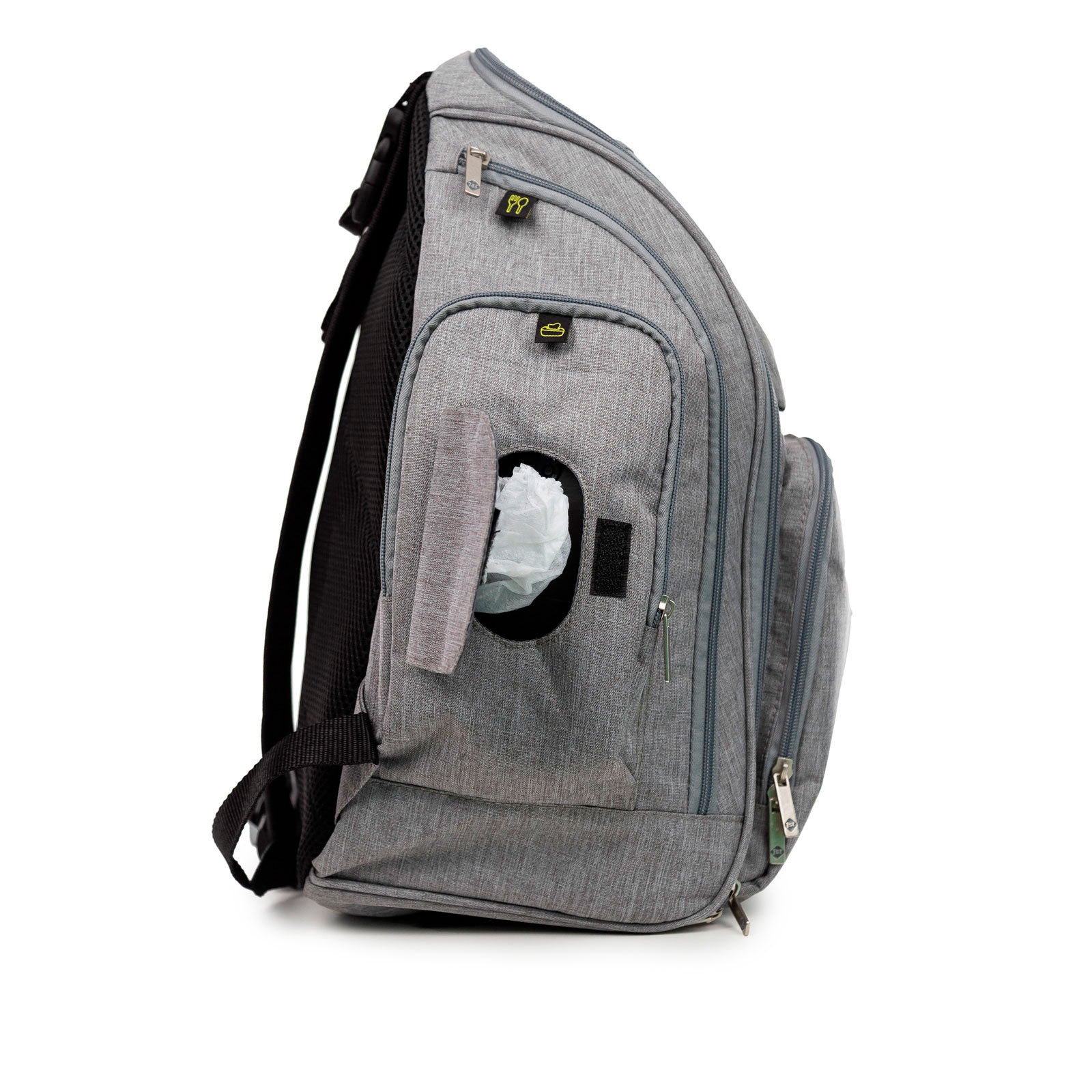 São diversos bolsos internos e o compartimento principal da Mochila Way ainda tem abertura total com zíper para facilitar o acesso ao interior. Na parte externa, estão o bolso térmico para alimentos e o impermeável, além de espaço para a garrafa e pequenos objetos. E tudo isso está sinalizado com etiquetas, para não ter confusão na hora de atender o bebê!