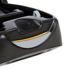 Sinalização na cor amarelo indica o correto travamento do bebê conforto One-Safe na base. Possui sistema click-and-go de desengate rápido, guia para passagem do cinto de segurança do carro e haste metálica para maior estabilidade.