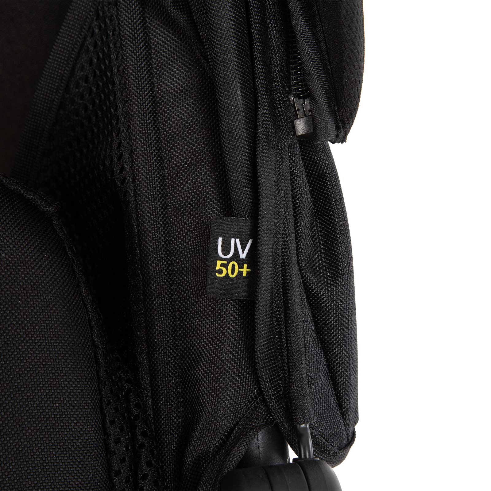 E mesmo se estiver fazendo muito calor, seu bebê vai estar protegido: a capota com proteção UV50+ tem aba de sol e as janelas de ventilação têm elásticos para se manterem abertas. A criança fica confortável e os pais podem ficar de olho nela pelo visor, que também tem elástico.