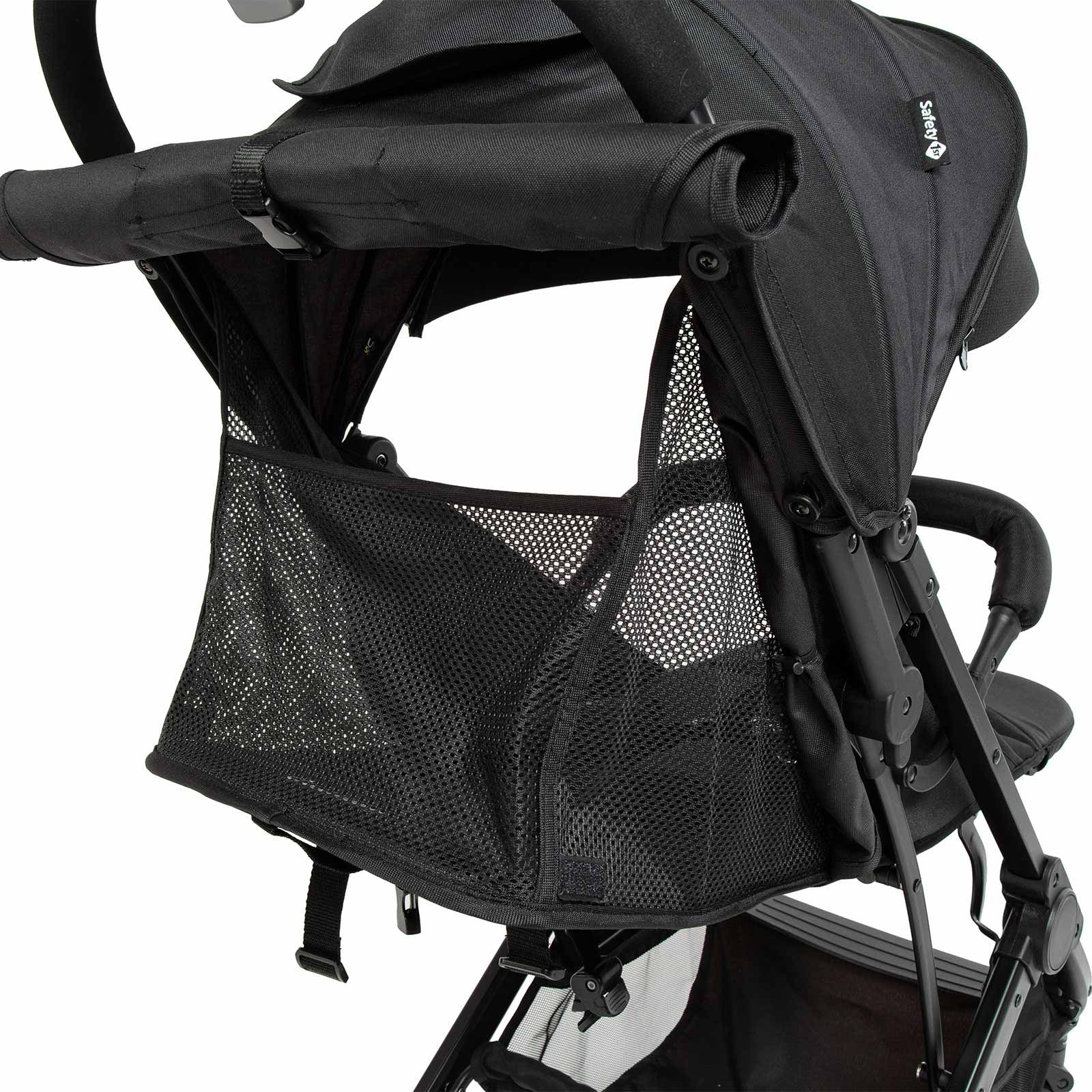 Para facilitar ainda mais as saídas e passeios com o bebê, a barra frontal tem abertura e também pode ser removida de acordo com a necessidade e o cesto de compras tem capacidade de 2kg, para levar a mochila do bebê, brinquedos e o que mais for preciso.