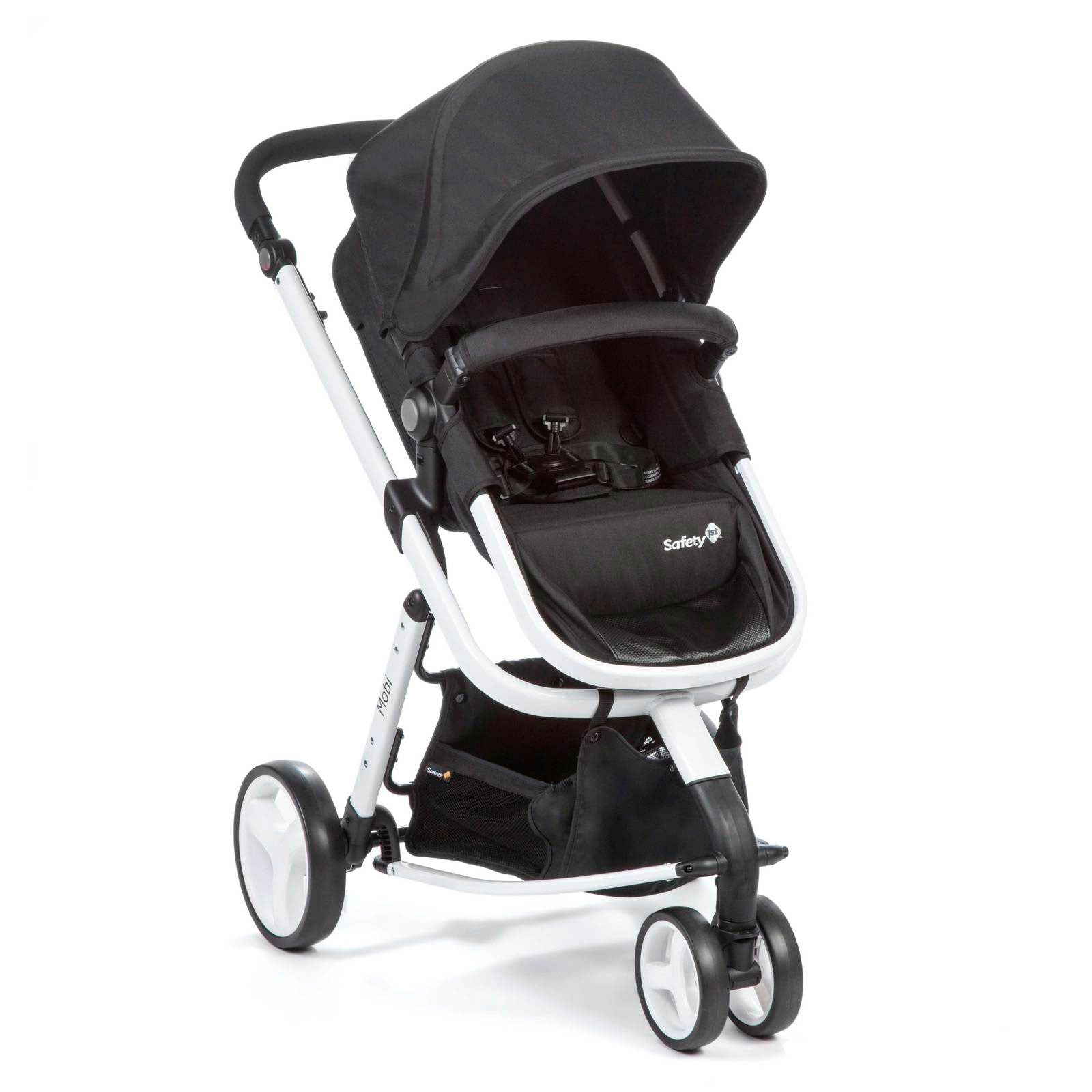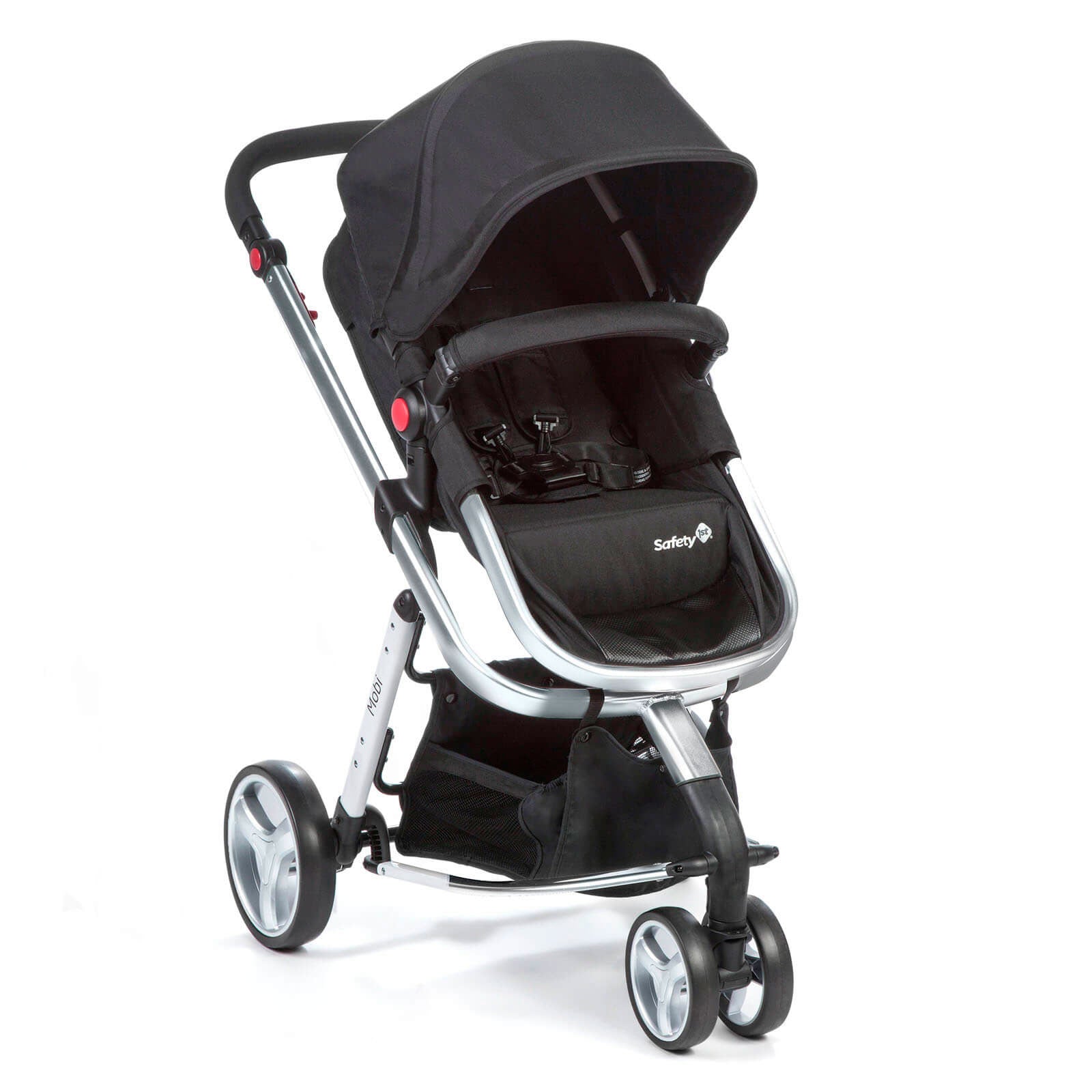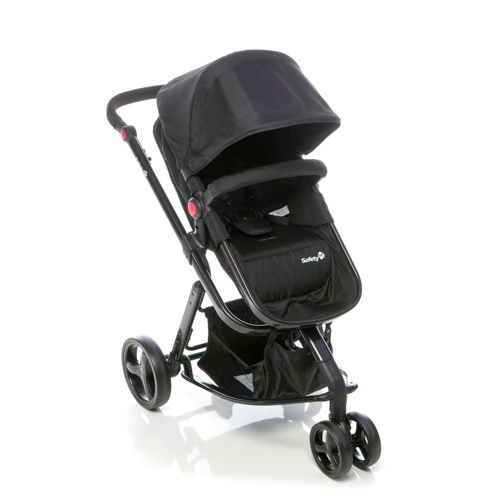 O carrinho Mobi da Safety 1st tem assento reversível que se transforma em moisés, reclinável em 4 posições, encosto ajustável em múltiplas posições, manopla ajustável em altura, 3 rodas largas: roda dianteira dupla e rodas traseiras grandes, freio centralizado, trava de movimento na roda dianteira, amplo cesto de compras com capacidade até 5kg, cinto de segurança de 5 pontos com protetores acolchoados e capota retrátil e removível, com proteção UV50+.