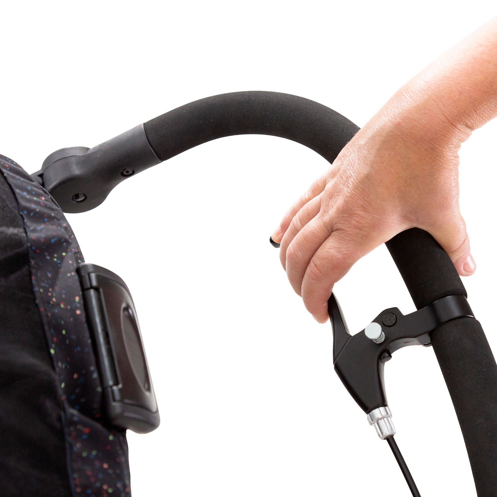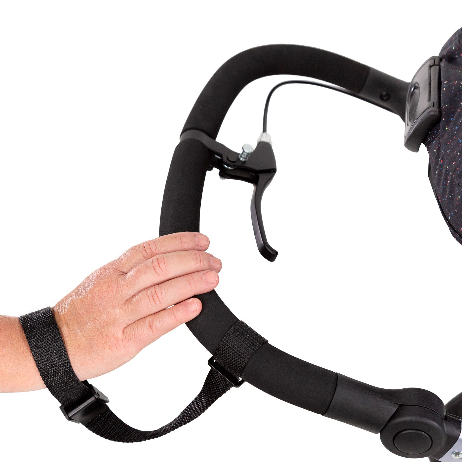 Além disso, este modelo combina muito com o estilo de vida saudável por conta de mais algumas características, como o freio que fica na manopla - e é acionado pelas mãos – e a pulseira de segurança com tira regulável. A capota tem tecido leve e impermeável com proteção UV50+ e estampa exclusiva Track&Field para fazer passeios tranquilos faça chuva ou faça sol.
