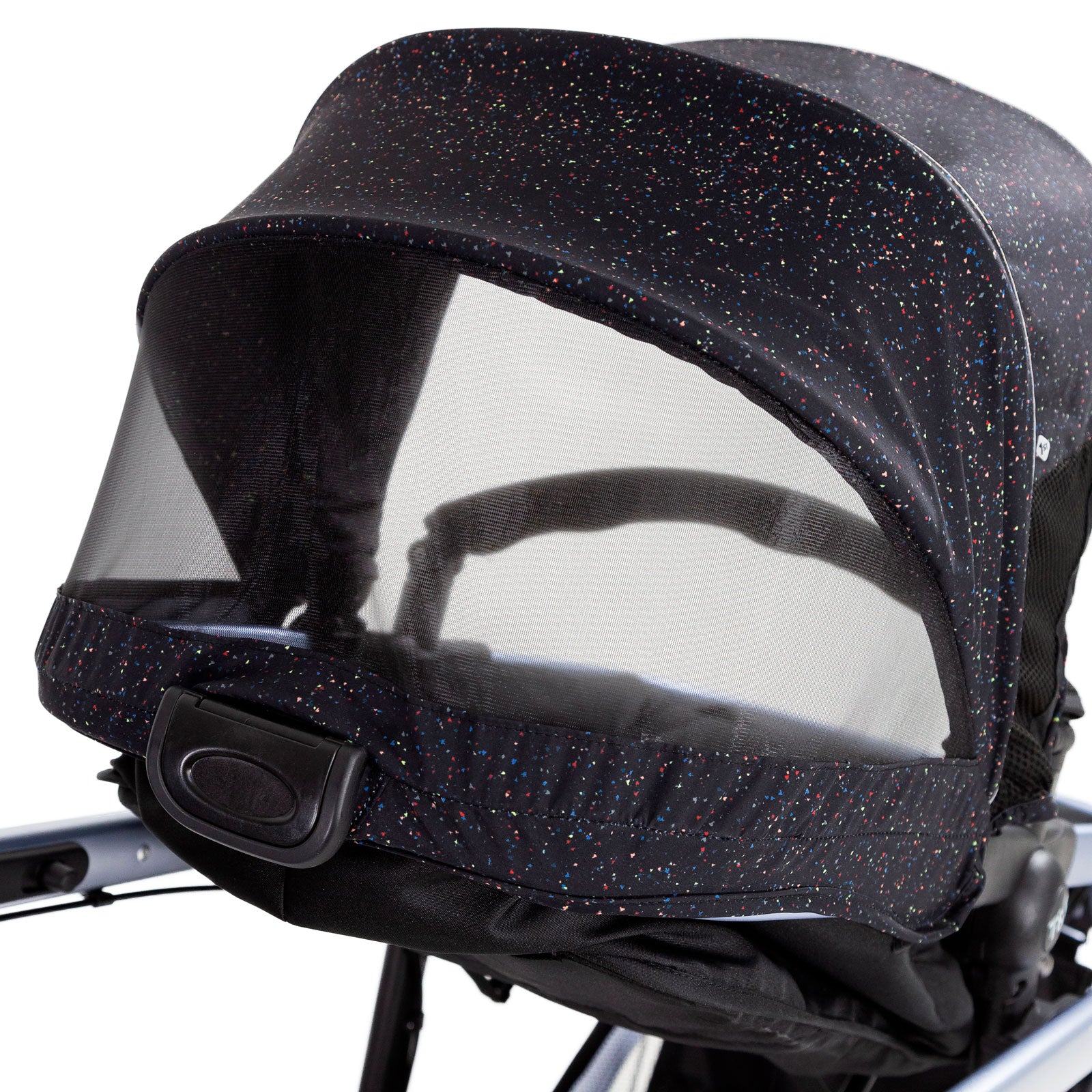 As costuras do assento com padrão exclusivo Track&Field e os logos e detalhes com aplicações refletivas complementam o visual esportivo do carrinho, que tem ainda ampla abertura de janela na capota e proporciona conforto com detalhes em tecido respirável e viseira de sol retrátil.
