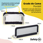 Deixar todos os ambientes da casa mais seguros para as crianças deve ser um cuidado diário na rotina dos pais. E segurança em todos os momentos, do dia ou da noite, mesmo na hora do soninho, mesmo um momento que parece tão tranquilo, merece atenção aos detalhes e não pode ser esquecido. A Grade de Cama Portátil da Safety 1st adapta-se facilmente em camas comuns e quando desmontada, fica compacta, apenas 71 cm, facilitando guardar ou transportar, caso precise, em viagens. Fácil de montar, não necessita ferramentas, seu encaixe nas camas comuns é rápido e remover também é simples e fácil. Em tela respirável e arejada, pode ser abaixada facilmente para ter acesso à criança ou para a arrumação da cama sem remover. Detalhes emborrachados para não escorregar e manter a grade no lugar. Indicado para crianças a partir dos 18 meses*. Compatível com a maioria das camas infantis**.