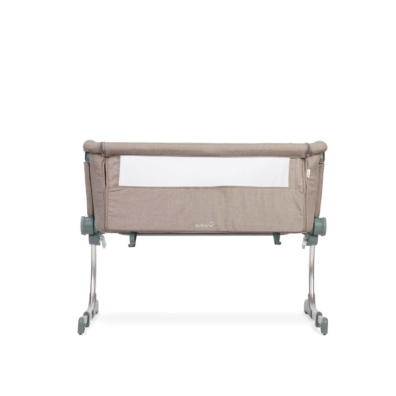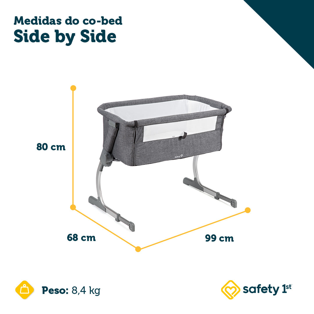 Acompanha tiras de segurança com ajuste, para envolver a cama dos pais, podendo ser usado em camas comuns ou box, 2 rodas com trava e pés anti-derrapantes e ajustáveis para aproximar das camas, permitindo um ajuste perfeito sem espaços entre o berço e a cama dos pais.