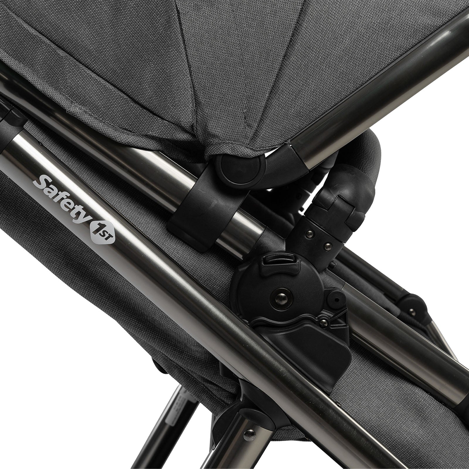O carrinho possui estrutura leve em alumínio, com acabamento cromado, moderno e atual, revestimento especial na manopla e barra frontal, capota ajustável, ampla, com proteção solar UV50+ e visor, assento reversível, pode ser usado virado para os pais ou para o mundo, acompanhando o crescimento do bebê, facilmente converte-se em assento de passeio, reclinável em 4 posições, encosto ajustável em 2 posições, o difencial do apoio dos pés, emborrachado, ajustável em 7 posições, que proporciona um maior conforto para os maiorzinhos e praticidade para os pais, cinto de 5 pontos com ajuste de largura e 3 posições de altura, manopla com 5 posições de altura, cesto espaçoso, rodas traseiras grandes, amortecedores, freio centralizado, em um único ponto, com indicador de travamento, controle de giro 360° nas rodas dianteiras, muito mais conforto para o bebê e para dirigir. Fechamento rápido, que pode ser feito com ou sem o assento.