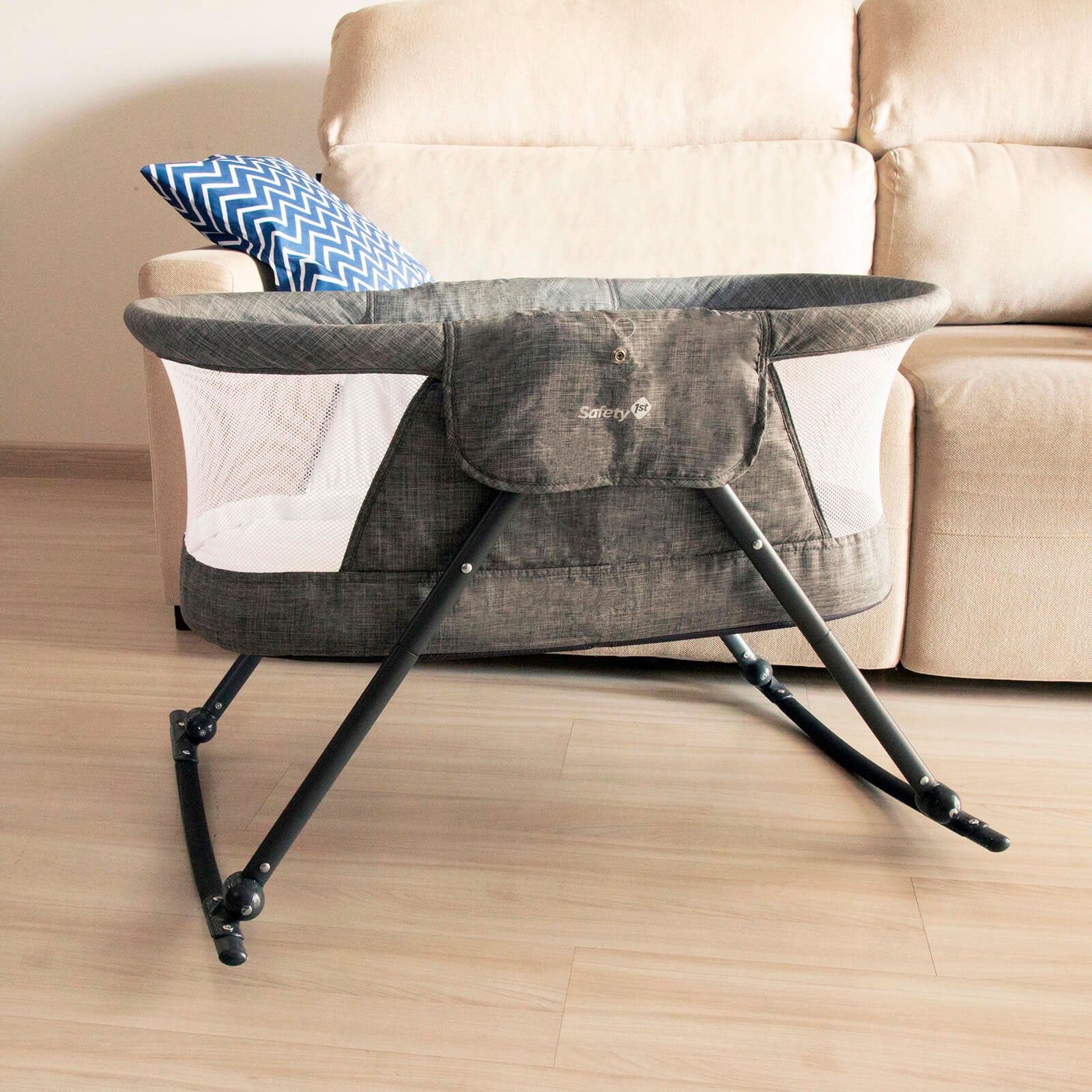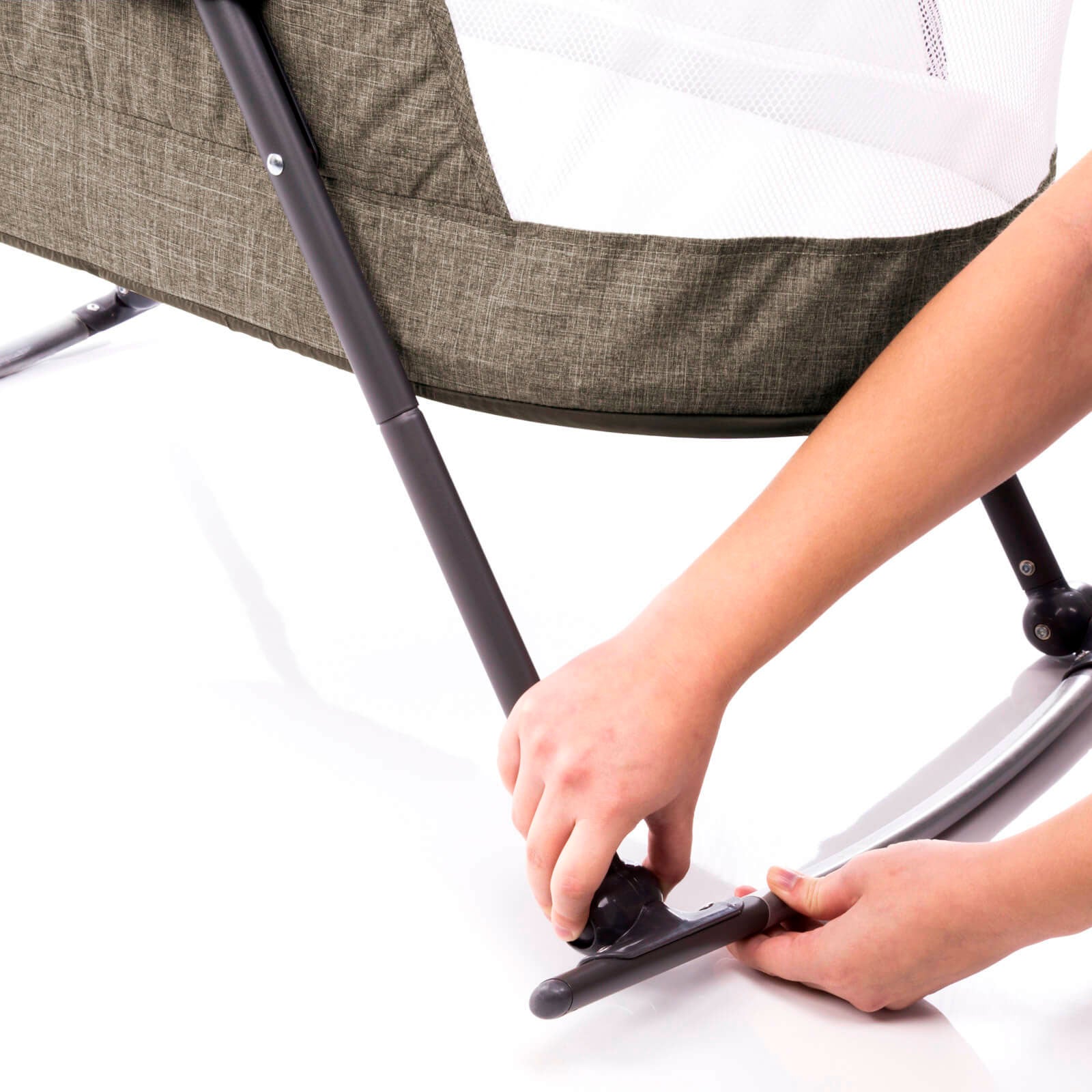 Estrutura leve, resistente e compacto quando fechado, fácil de montar, transportar e armazenar para usar em qualquer situação. Pés curvos com funções fixa e de balanço e laterais com tela arejadas.