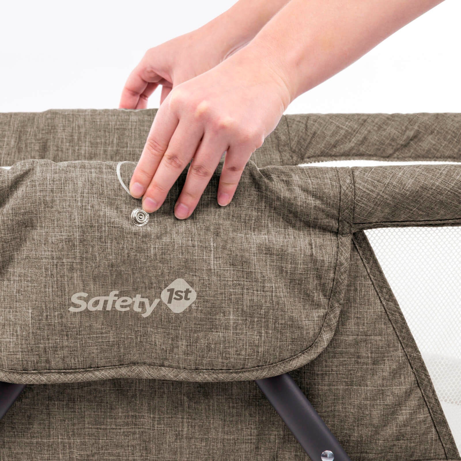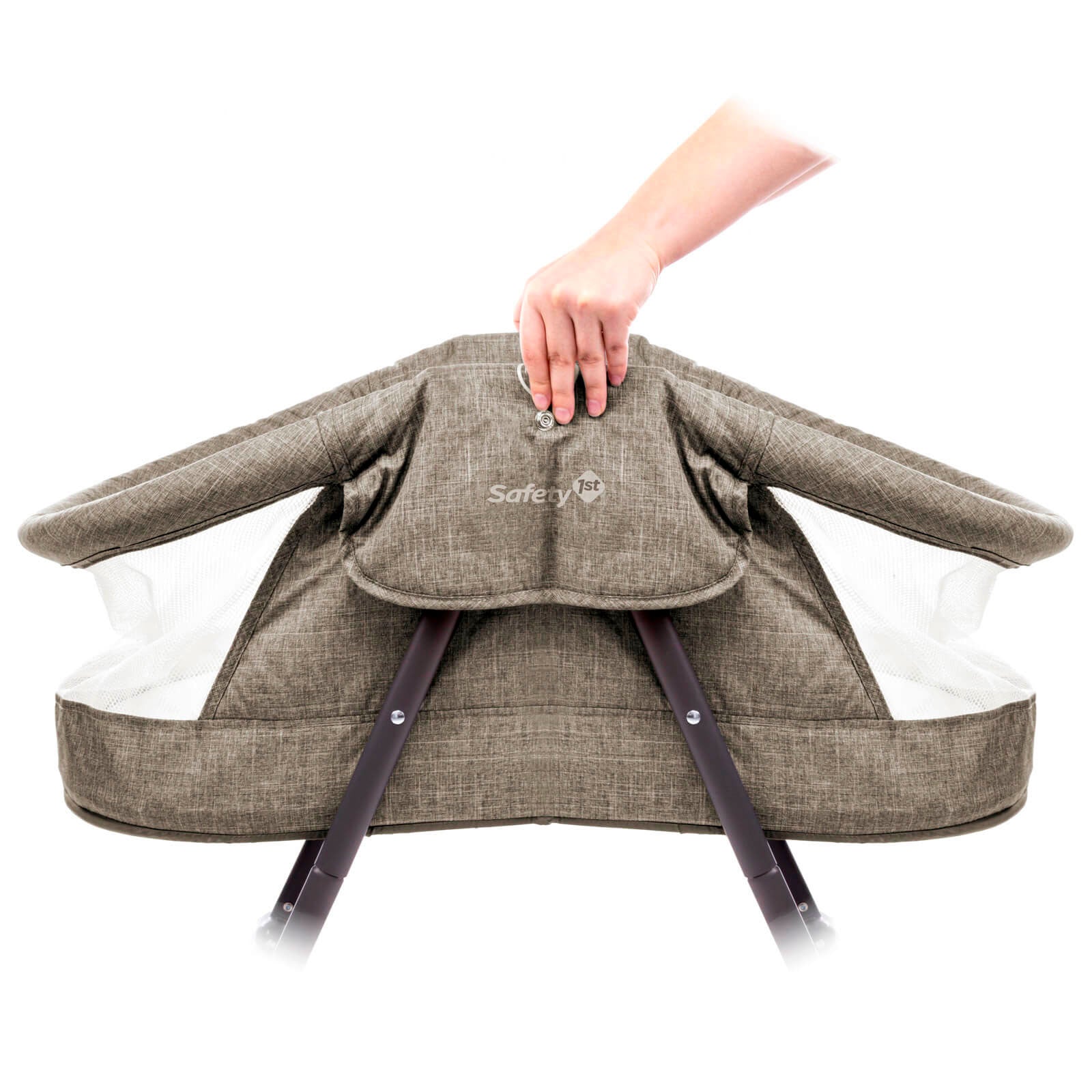 Colchonete macio removível para limpeza, cobertura tipo mosquiteiro fácil de instalar e fechamento simplificado com botões laterais e bolsa para transportar.