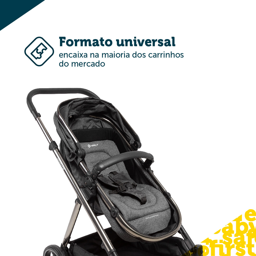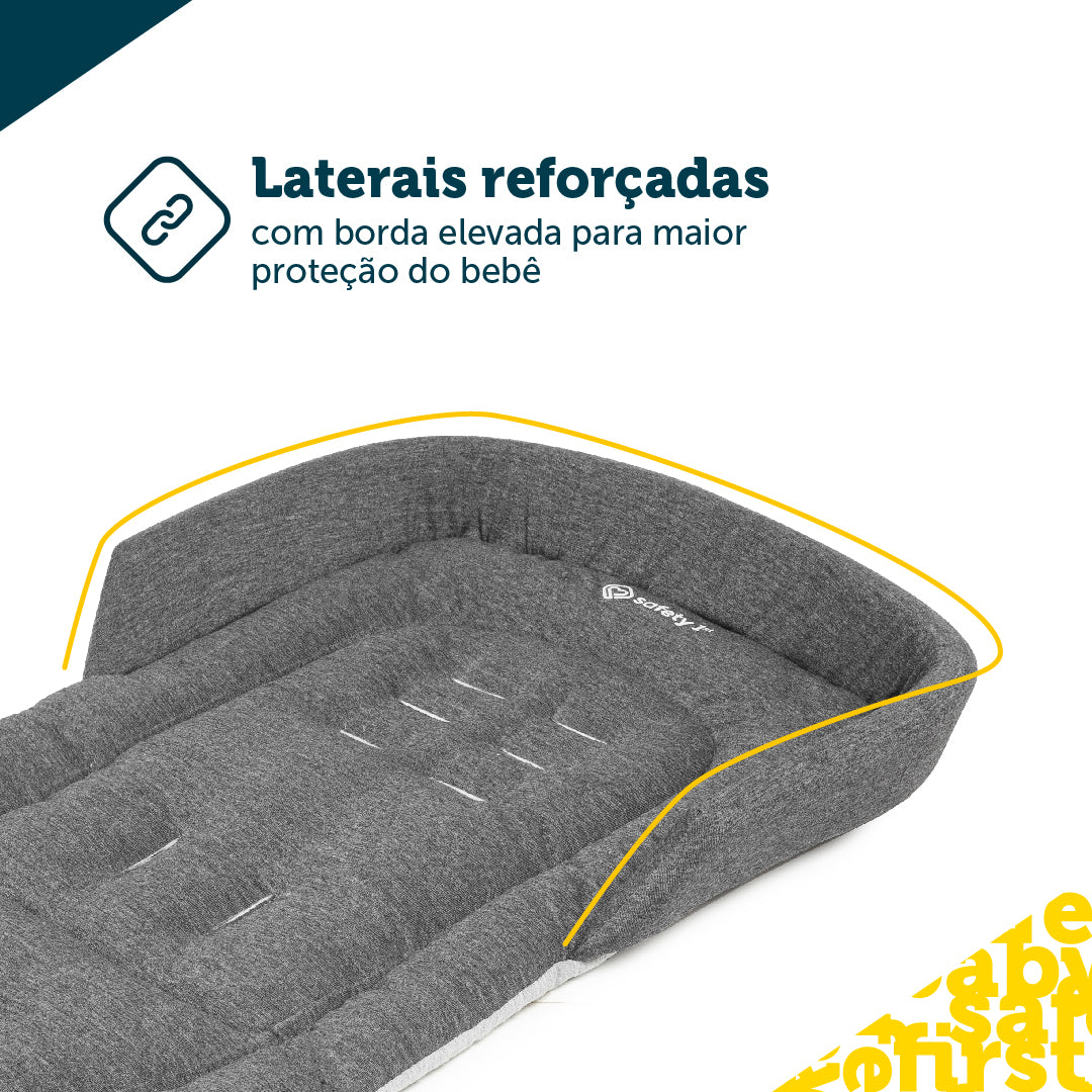 Ela acomoda perfeitamente os recém-nascidos, com laterais reforçadas na região da cabeça e borda elevada para proteção extra. Ela acompanha o crescimento do seu bebê, podendo ser usada no carrinho tanto no modo moisés quanto no modo assento quando o bebê já estiver sentado.