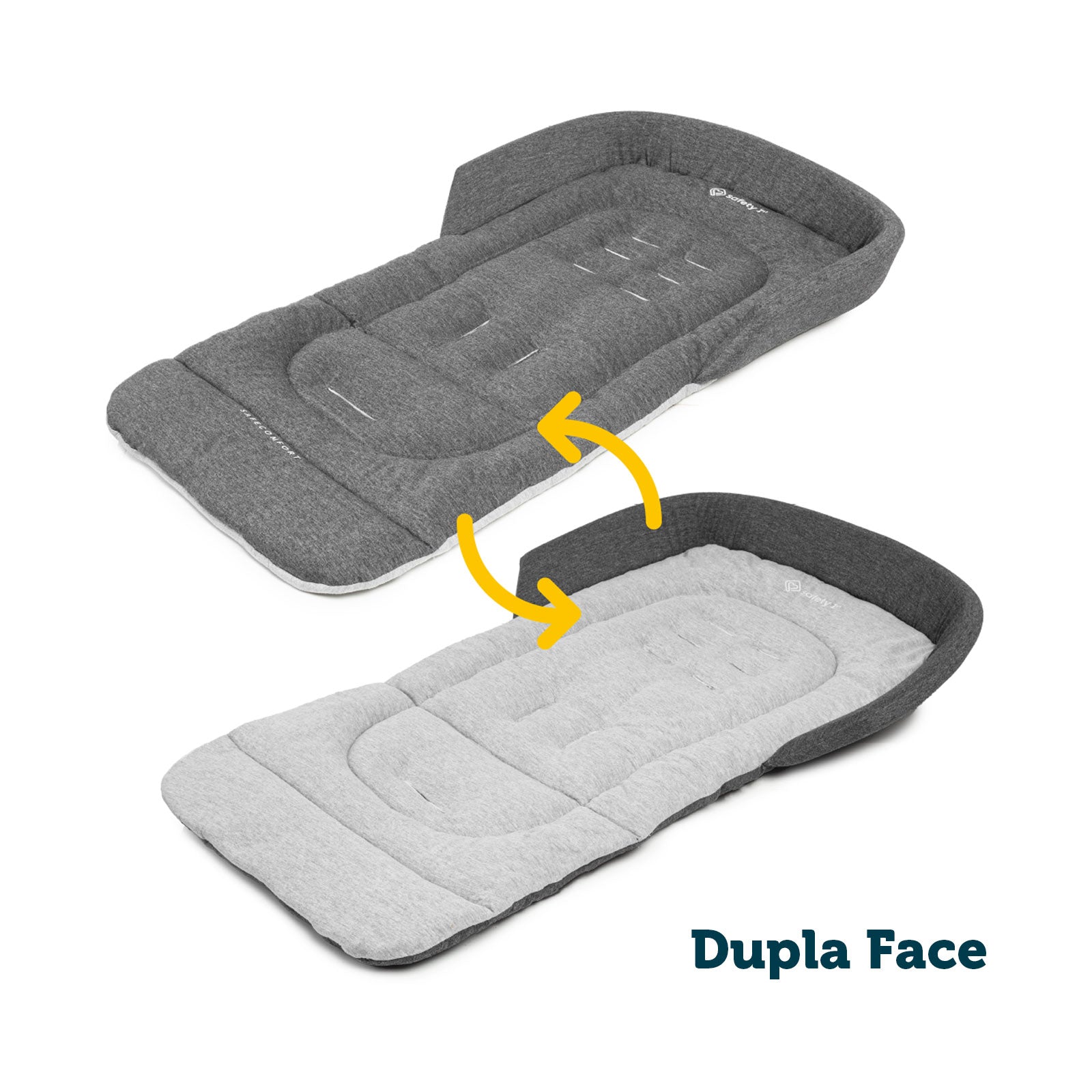 Dupla-face, ela permite variar o visual do carrinho e, além do conforto, é prática para manter a limpeza do assento, podendo ser lavada facilmente na máquina.