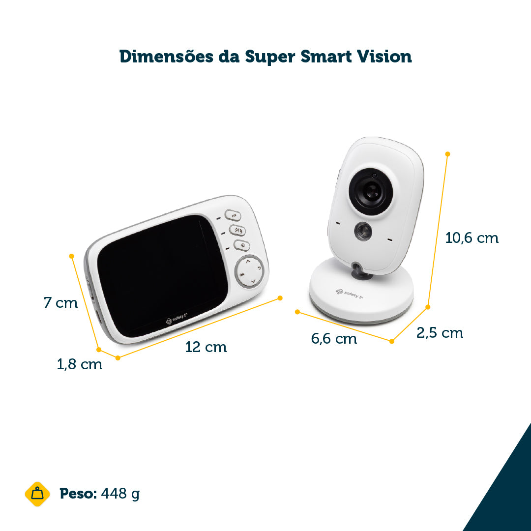 Tudo isso em um design clean e moderno, que combina com qualquer ambiente. A Super Smart Vision possui suporte para vários idiomas e alarme com ajuste em horários específicos. E como segurança é nossa prioridade, oferecemos garantia estendida de 2 anos, basta fazer o registro gratuito no site da Safety 1st.
