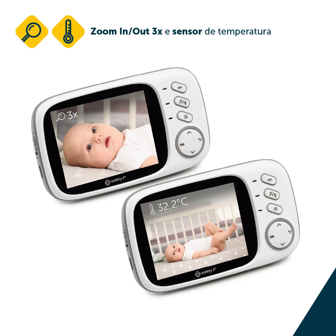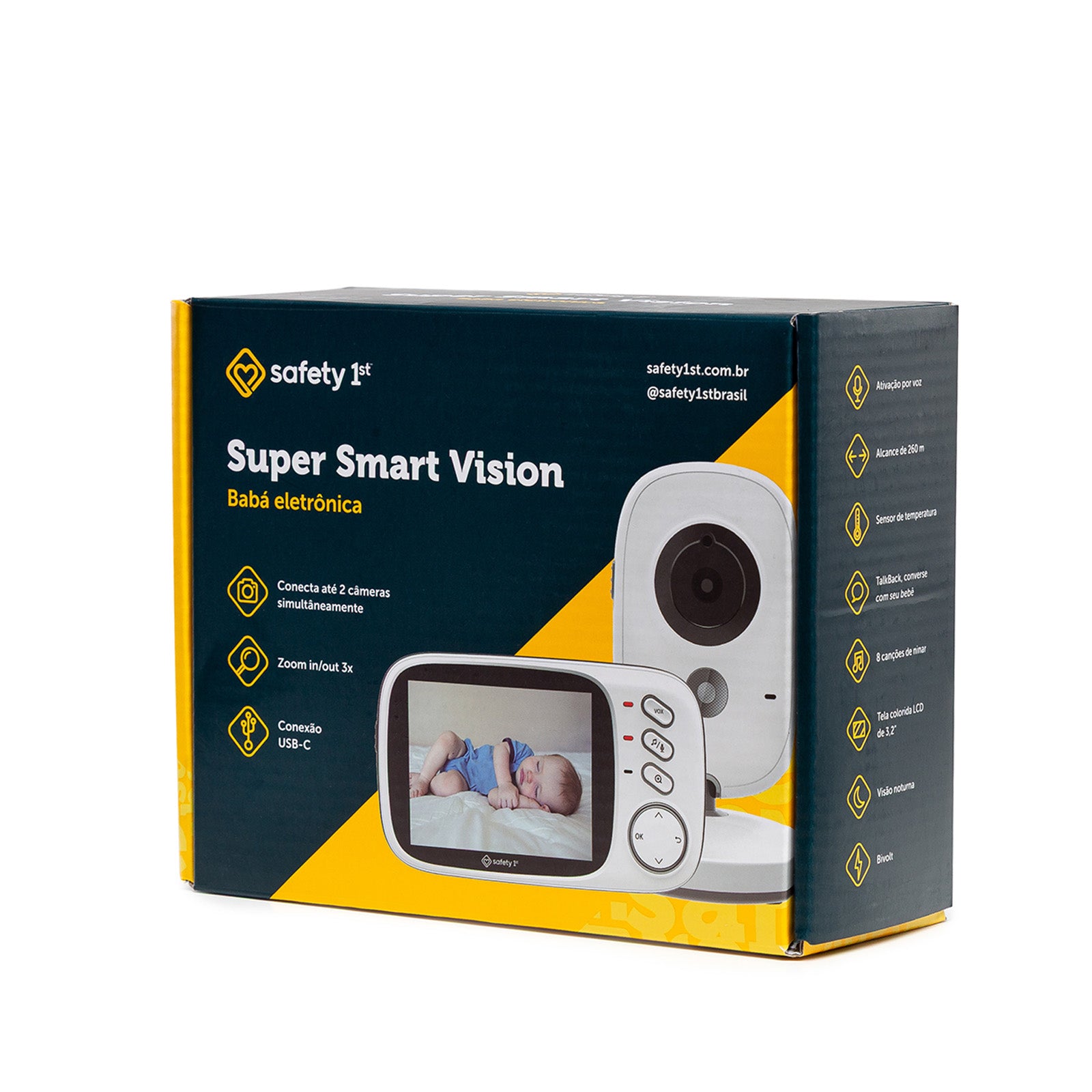 A maior parte do tempo, os bebês estão dentro de casa, e tornar essa casa segura é um motivo de preocupação para as famílias. Com a babá eletrônica Super Smart Vision da Safety 1st, essa tarefa fica bem mais fácil. A nova versão conta com um monitor aprimorado e recursos que ajudam a garantir essa segurança: zoom das imagens, monitor colorido de LED de 3,2” com tecnologia IPS, que oferece maior nitidez, cores vibrantes e imagens nítidas com ângulo de visão bem amplos, para acompanhar o seu pequeno de perto em todos os ambientes da casa.
