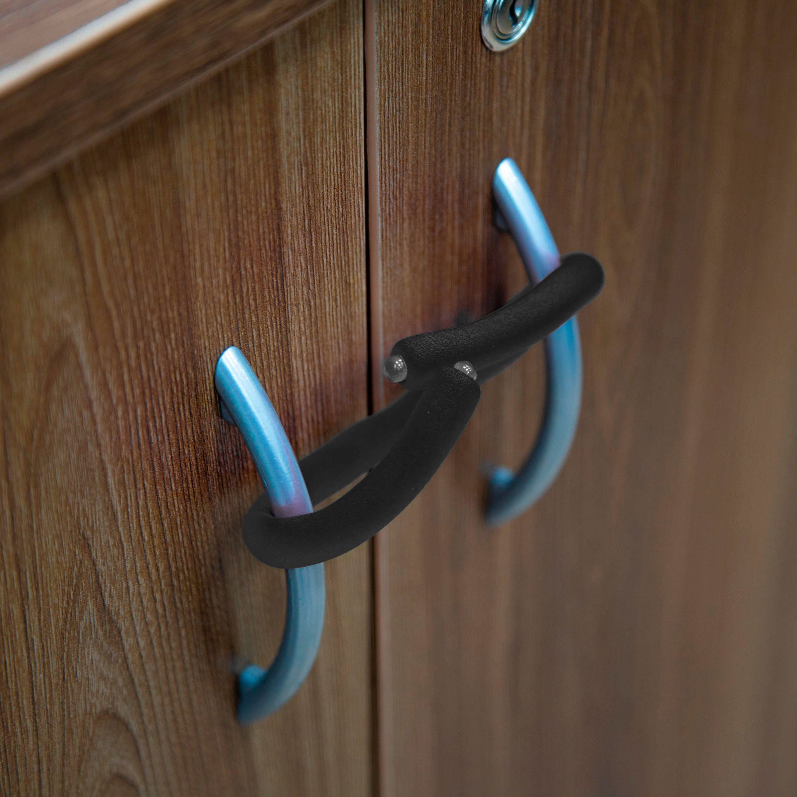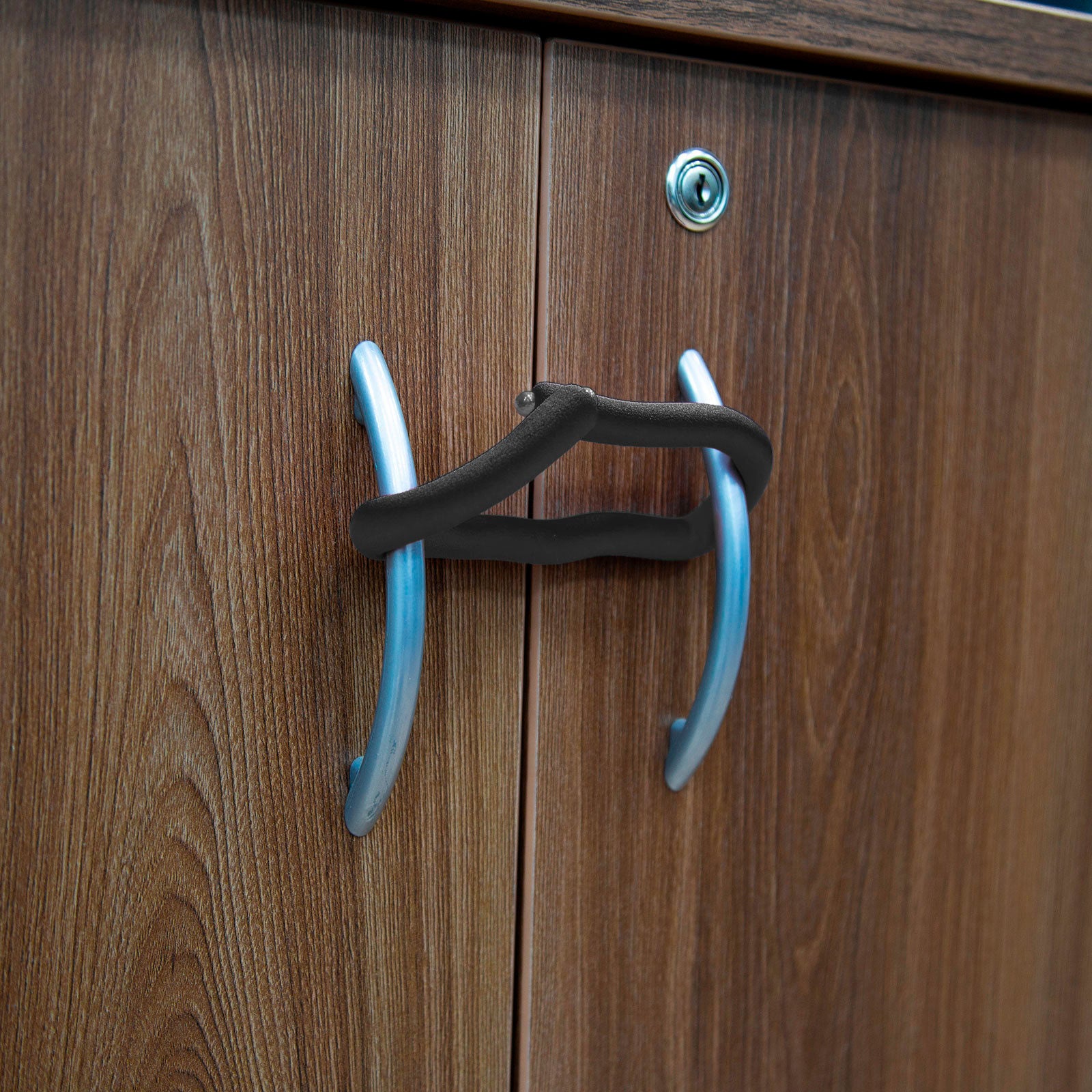 Feita em alumínio com revestimento emborrachado e macio, é resistente e segura, pode ser usada para fechar portas ou janelas e maçanetas que tenham o formato para encaixe. Como um gancho, suporta até 5 kg e pode ser colocada no carro, no carrinho do bebê ou onde mais precisar pendurar algo. Várias opções de cores, faça sua coleção!