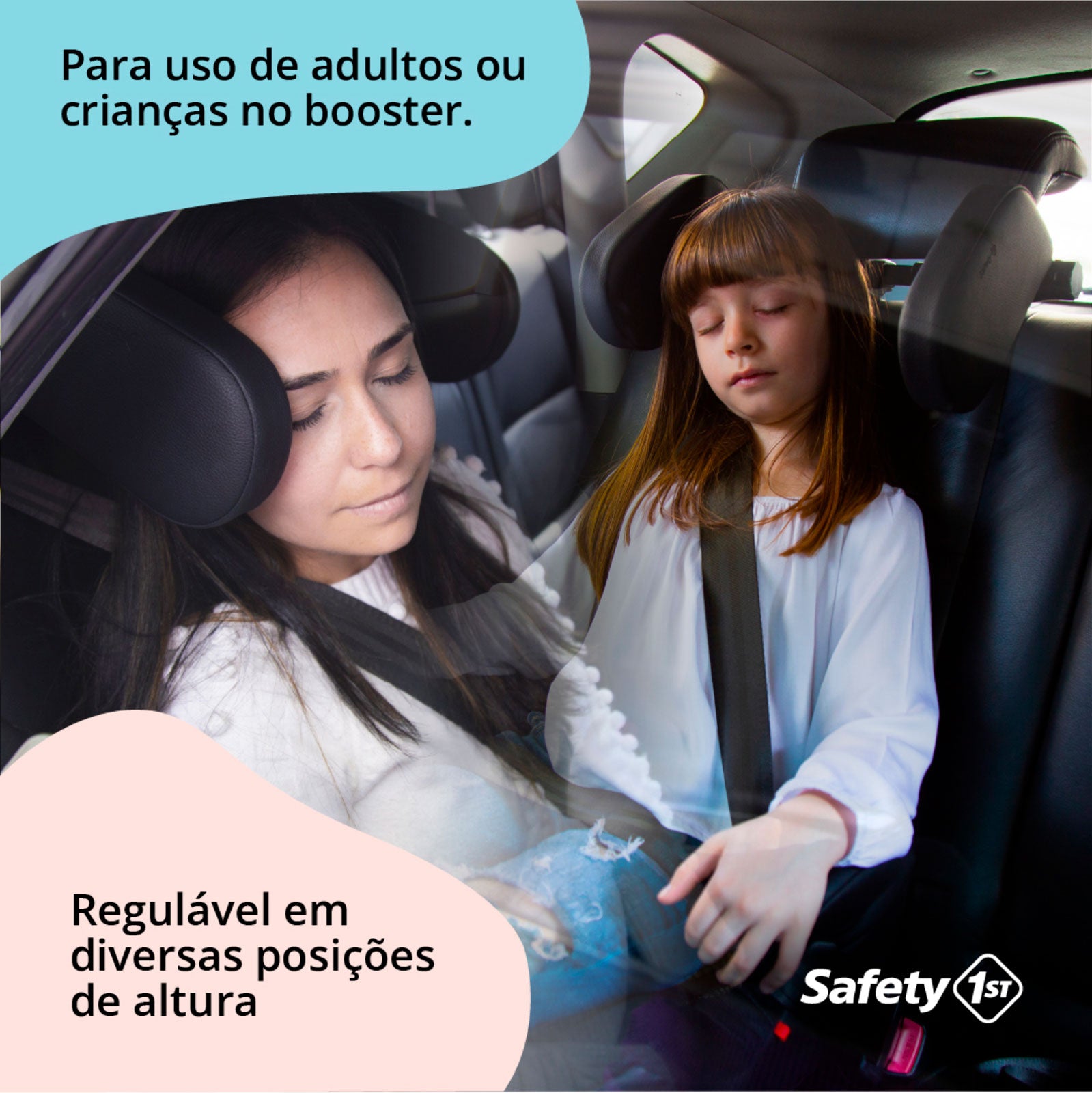 Tombando para os lados toda vez que o passeio de carro é mais longo? O apoio de cabeça Safety 1st é a solução ideal e pode ser usado pelas crianças, ainda em um assento de elevação sem encosto, até os adultos de todas as idades. A altura facilmente regulável, em diversas posições, adequa-se à necessidade do usuário e a almofada memory foam proporciona o conforto tão desejado para estes momentos. De fácil instalação, não necessita ferramentas, basta encaixá-lo nas barras de suporte do apoio de cabeça do veículo. Compatível com a maioria dos bancos automotivos, exceto modelos esportivos que tenham o apoio de cabeça integrado.