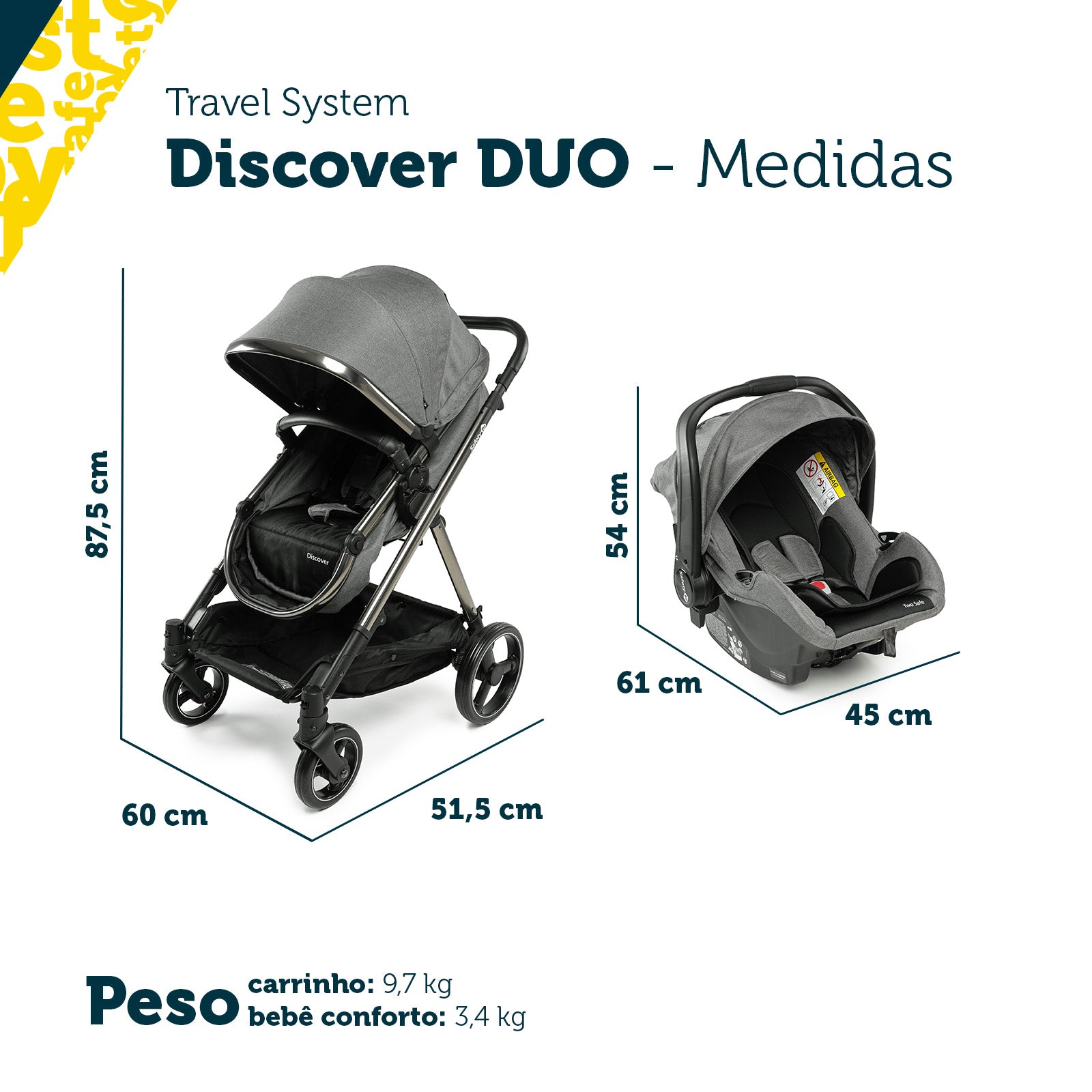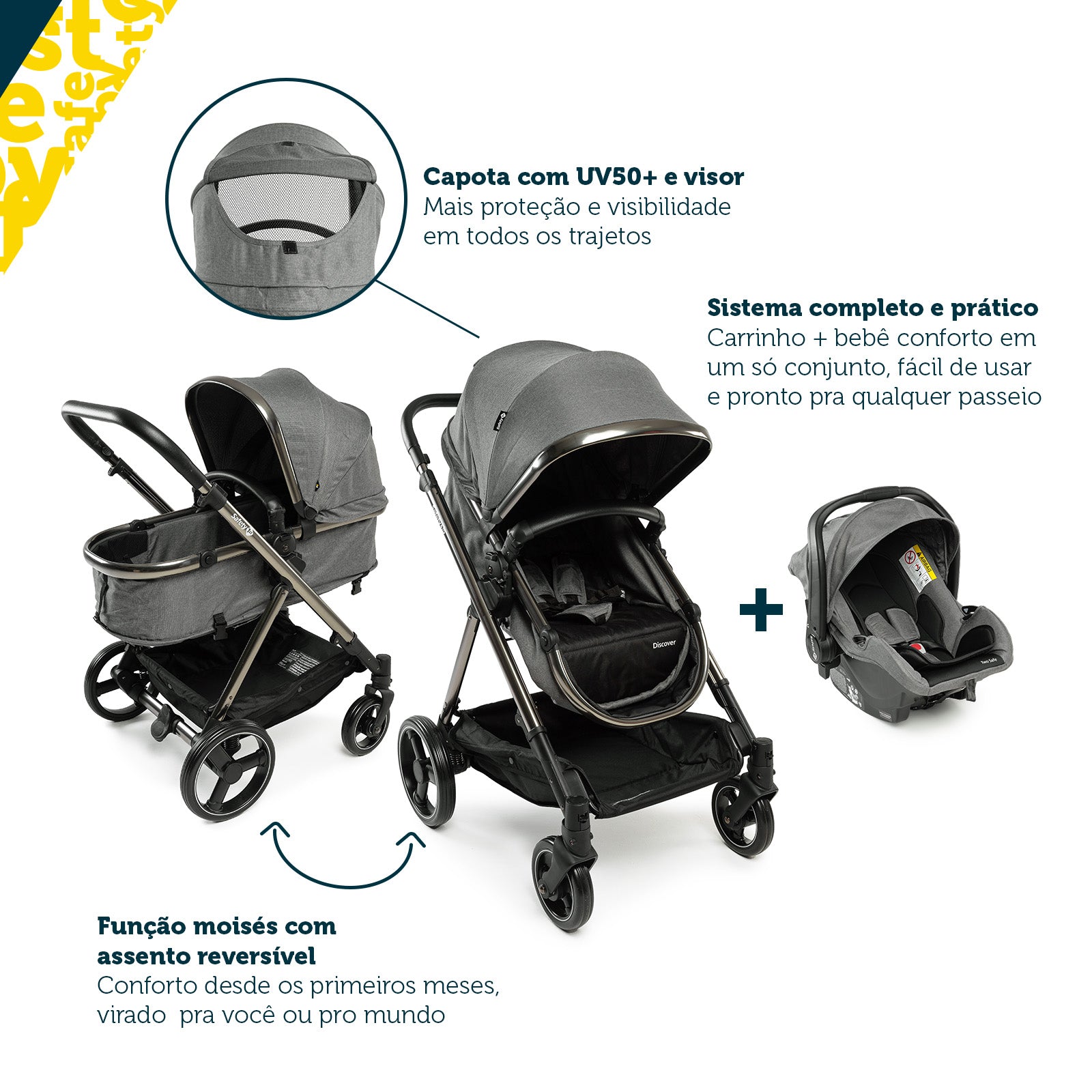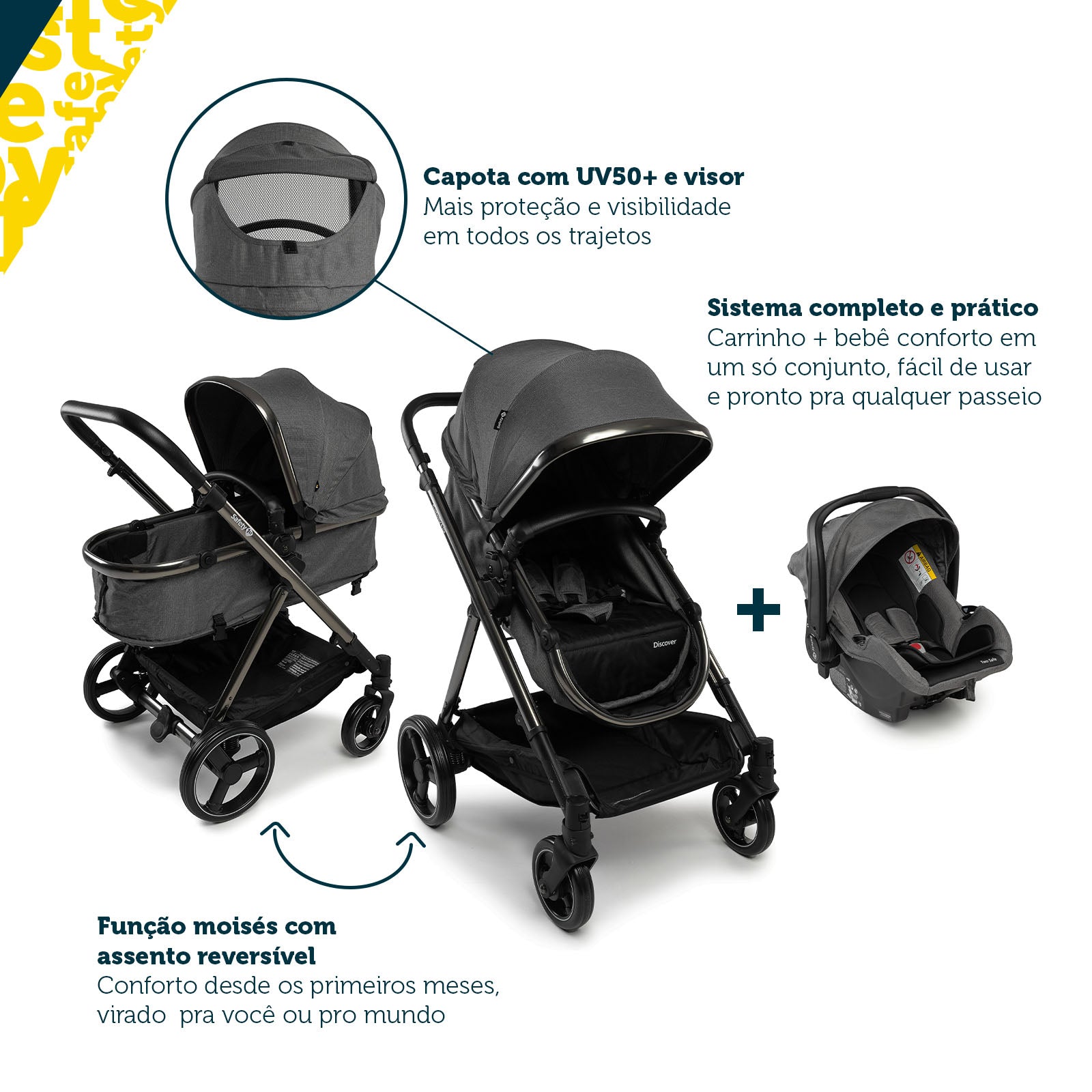 O TS Discover Duo é uma solução inteligente que une carrinho e bebê conforto em um sistema de passeio prático, seguro e pronto desde a saída da maternidade. O assento do carrinho vira moisés e pode ser usado virado para frente ou para trás, garantindo mais proximidade nos primeiros meses e mais autonomia na hora certa.