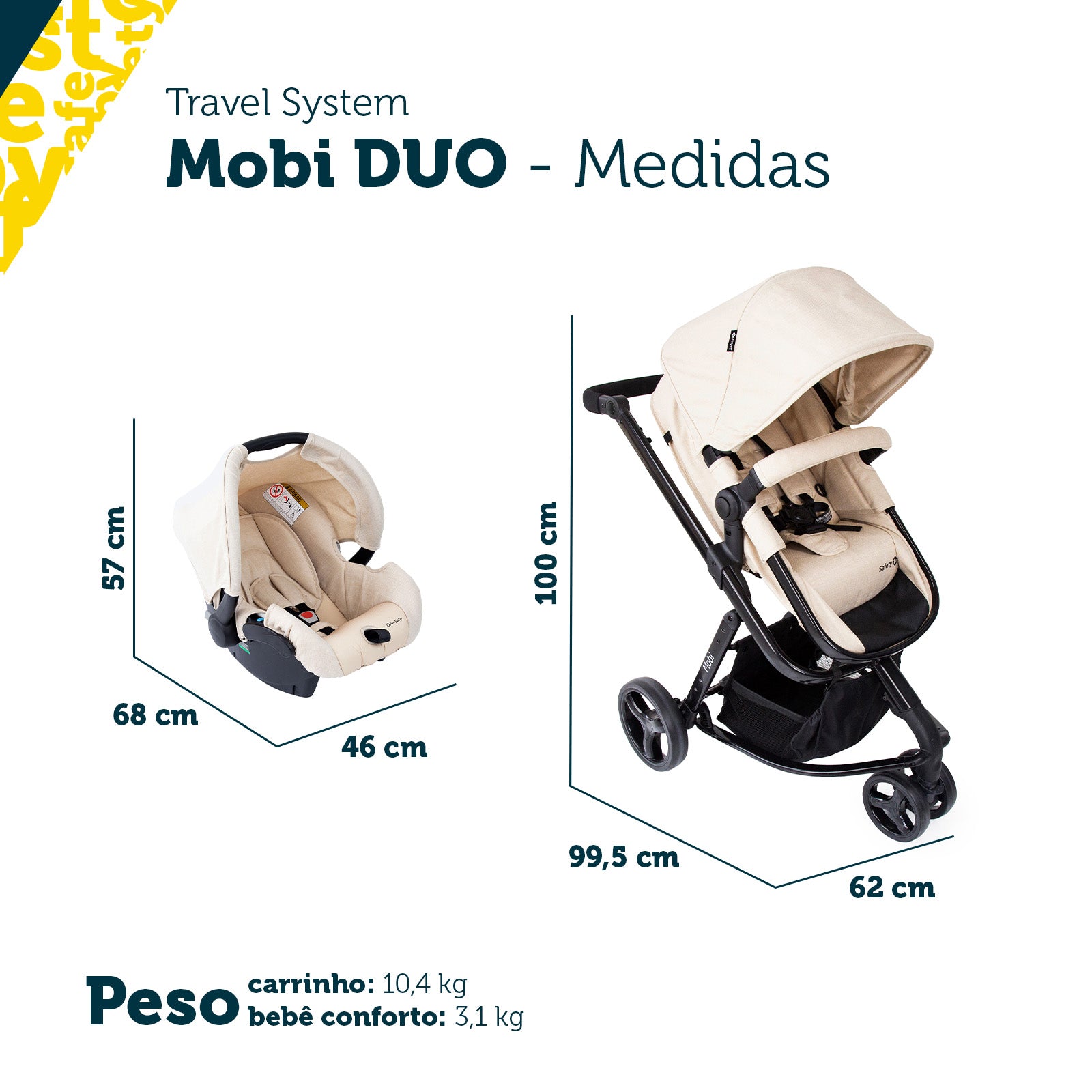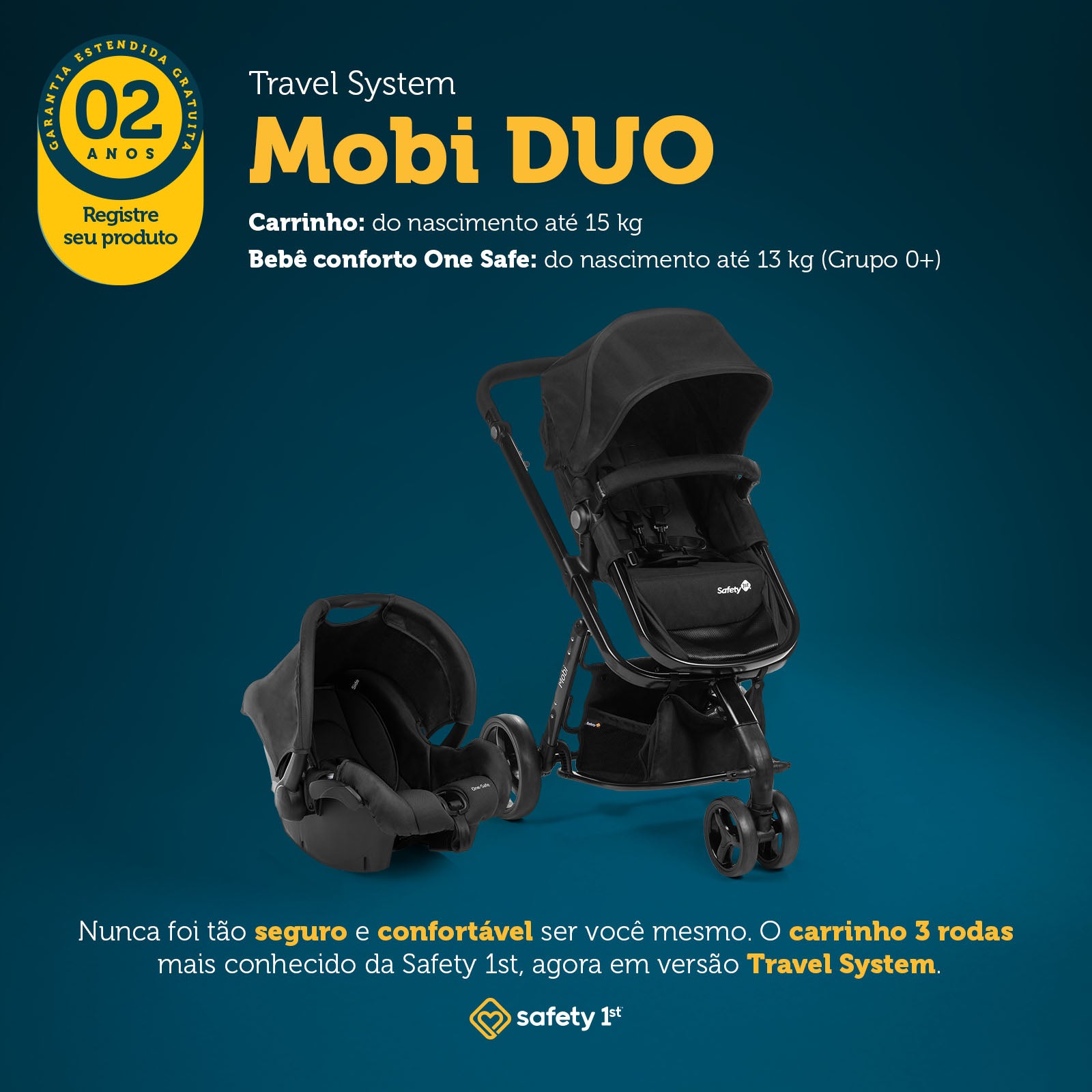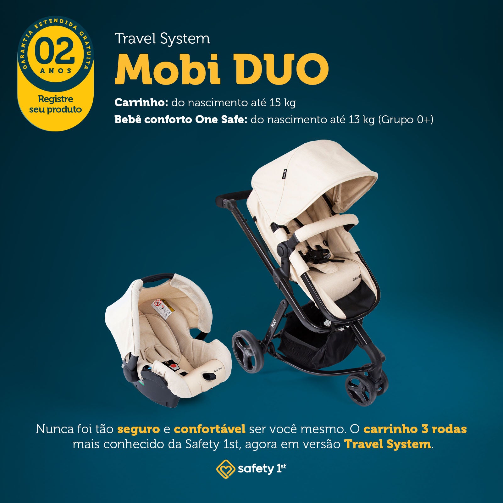 O Mobi TS Duo é a evolução do nosso best seller mais urbano. Com design de 3 rodas e estrutura leve, ele é sinônimo de praticidade, estabilidade e agilidade desde o primeiro dia. Agora em versão Travel System, acompanha também o bebê conforto One Safe.